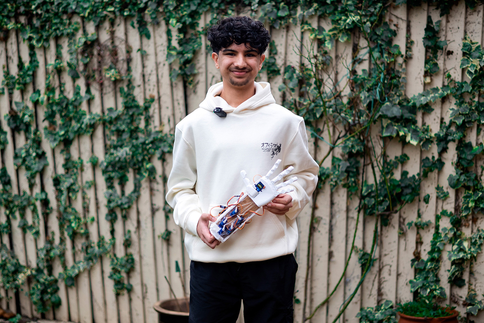 Over the past seven years, Suleymaan has built everything from remote-controlled paper planes to his most recent innovation: a fully articulated, gesture-controlled robotic hand powered by camera recognition using code he wrote himself. He has secured an apprenticeship at a local robotics company, but still works on his own creations in his spare time.